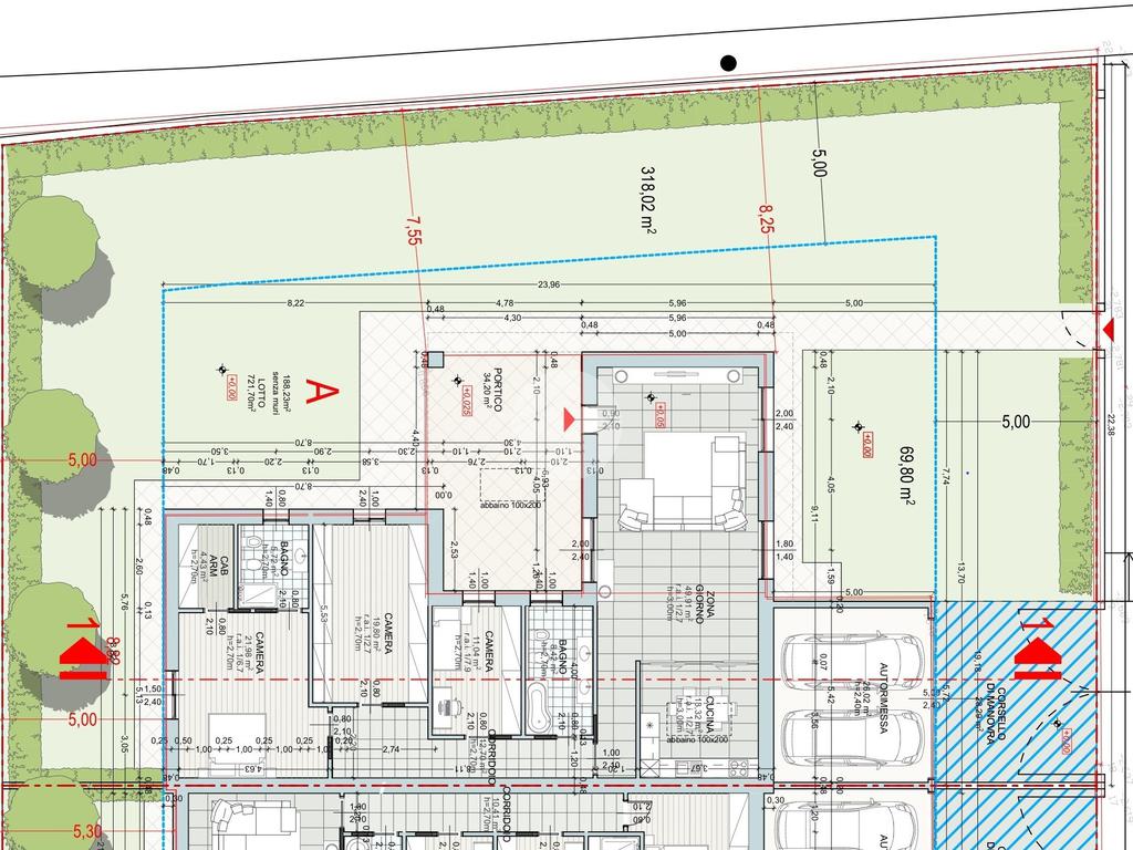 All'esterno, un portico accogliente si affaccia su un giardino privato di 320 mq, ideale per momenti di relax all'aria aperta. Gli interni sono ancora personalizzabili.